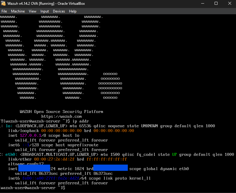 I hosted the Wazuh Manager on a Linux-based virtual machine to serve as the central correlation engine and log aggregator.