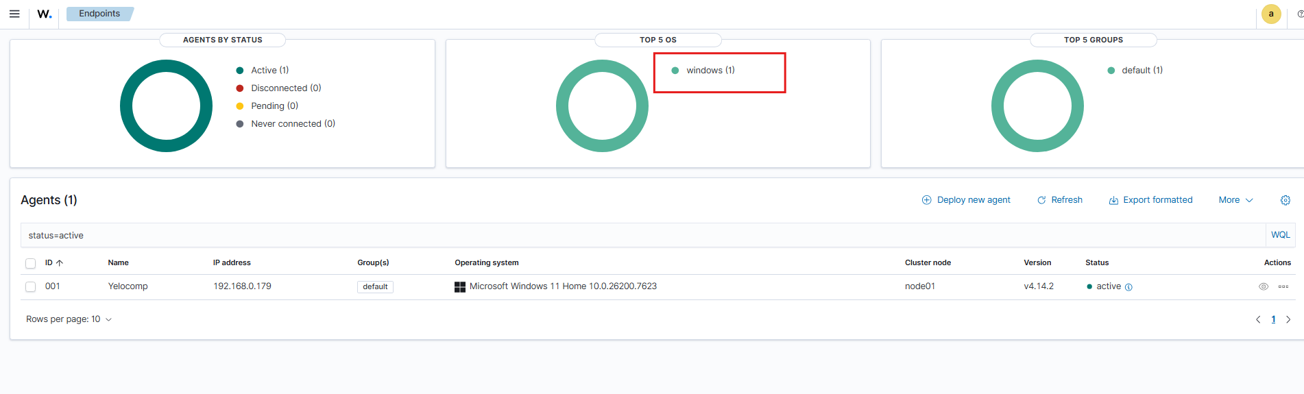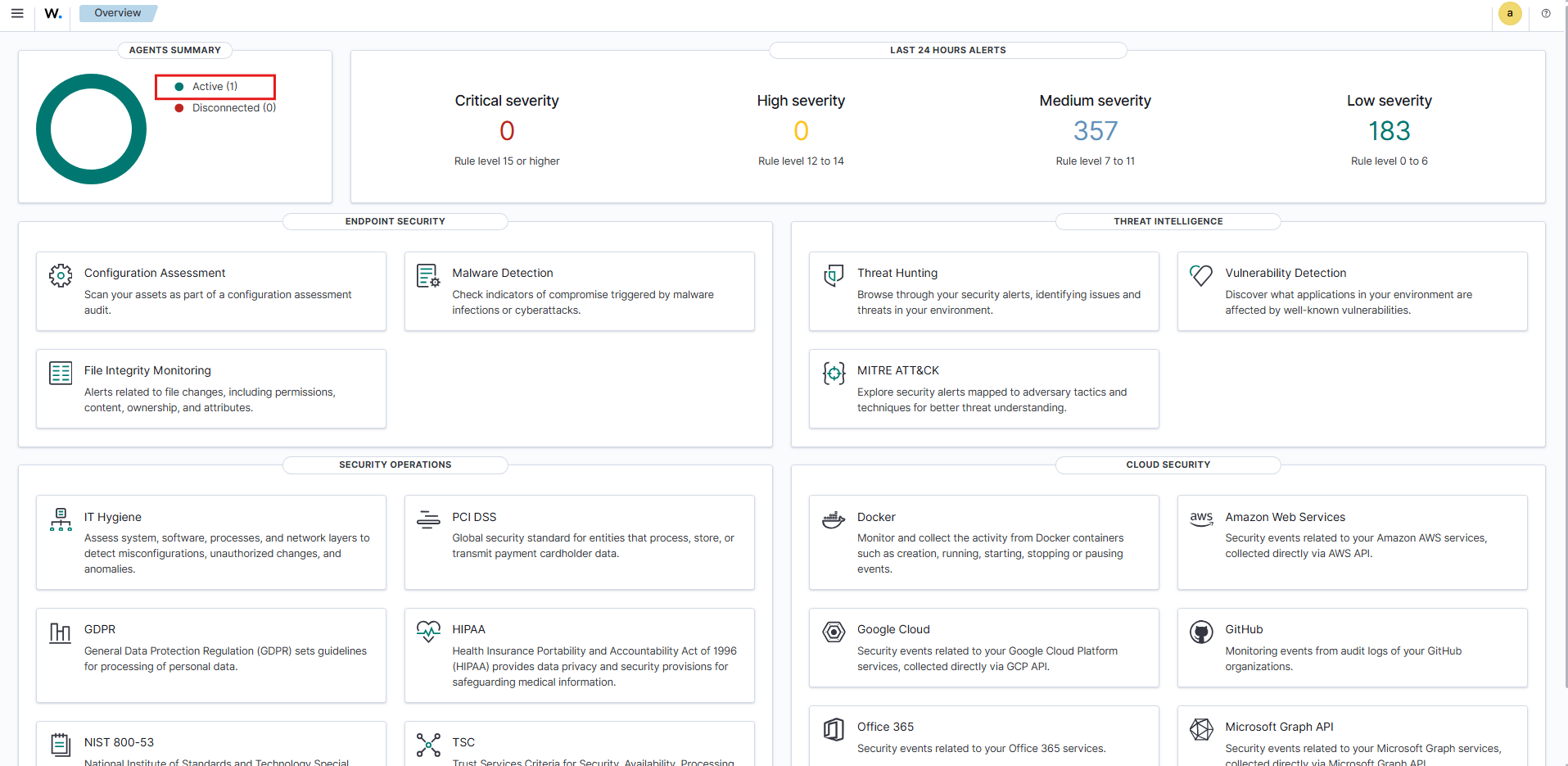 - SOC Implementation: Successfully established a functional threat detection pipeline, confirming active agent status and secure log ingestion.