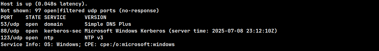sudo nmap -sU --top-ports 100 -sV -T3 -Pn -n 10.129.231.186