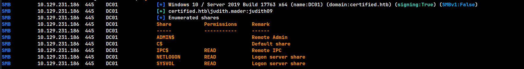 nxc smb 10.129.231.186 -u judith.mader -p 'judith09' --shares