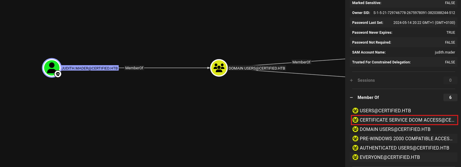Certificates were enumerated for judith.mader to identify potential AD CS misconfigurations: